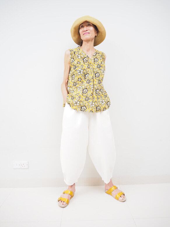 コットンリネンで1枚で映えるバルーンパンツをお作りしました。