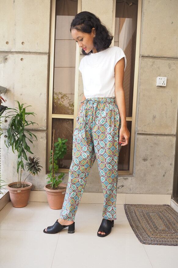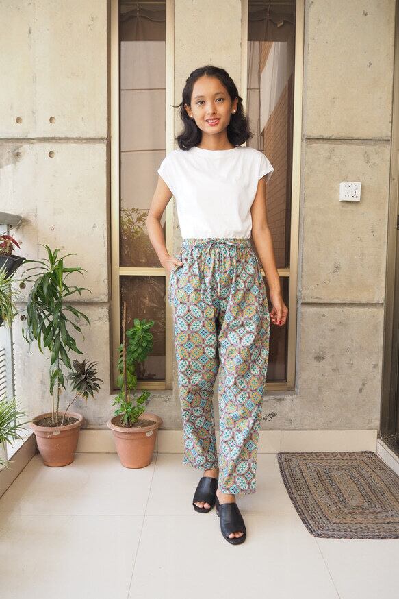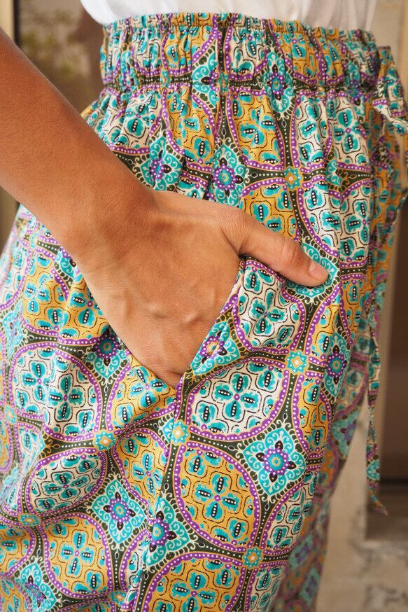 スクリーンプリント 綿サルエルパンツ インド綿でお作りしまし。