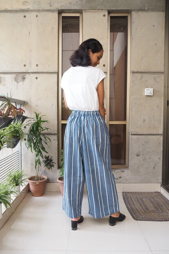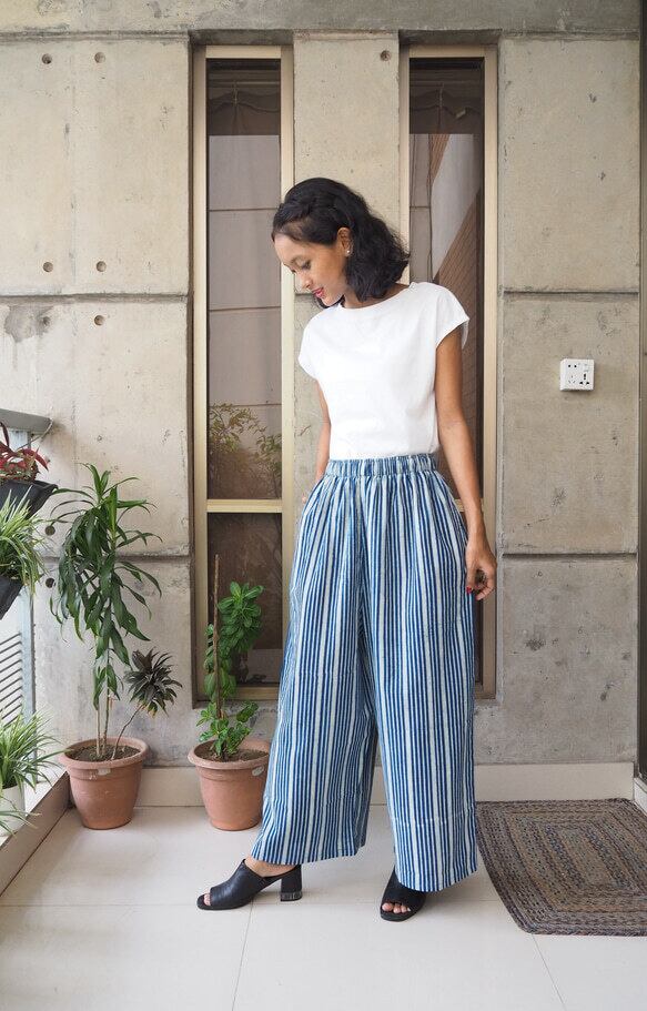 インドの手仕事ハンドブロックプリントコットン生地で楽チンに履いていただけるけどキレイに見えるワイドパンツを作りました!