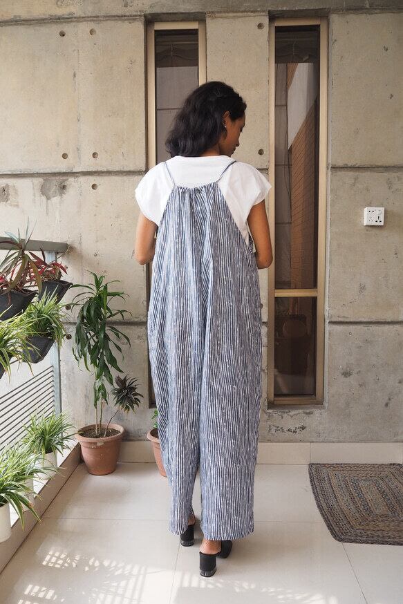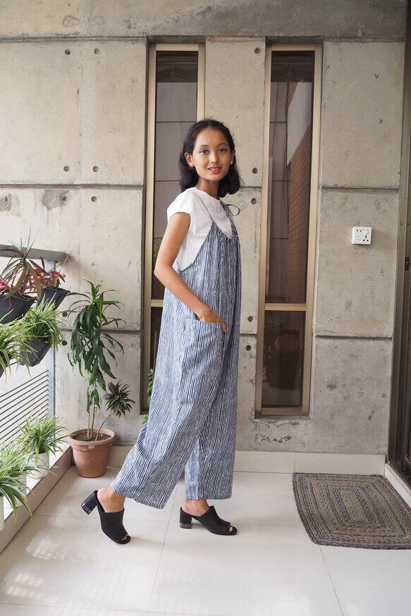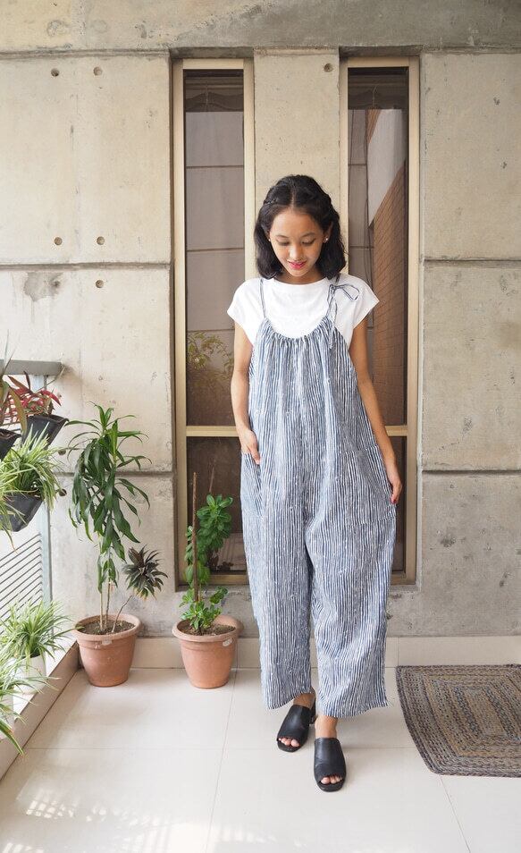 インドの手仕事布、ハンドブロックプリントコットンでで楽チンに穿いていただけるサロペットをつくりました!