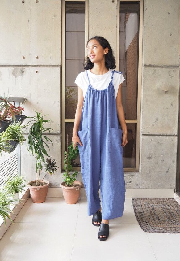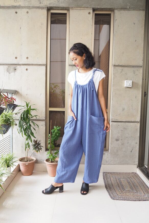 ダブルガーゼ布で楽チンに穿いていただけるサロペットをつくりました!